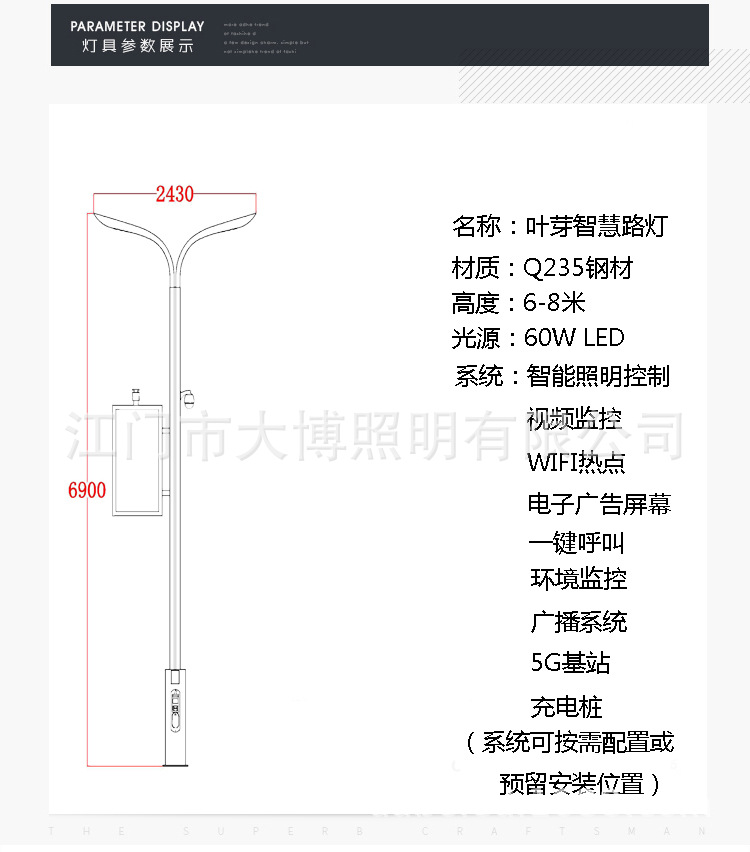 葉芽款智慧路燈廠家5G充電樁廣告屏監控多功能智能庭院燈